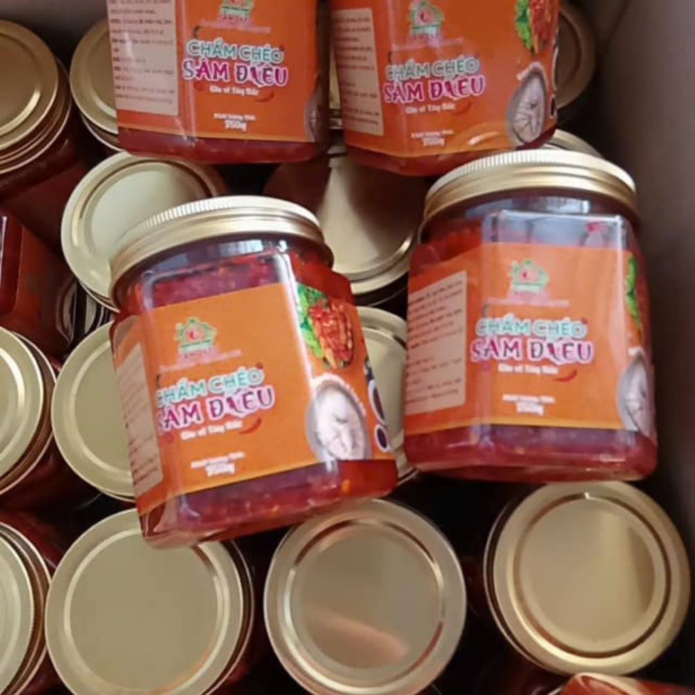 Chẩm chéo Sâm Điêu là gia vị đặc trưng của vùng Tây Bắc, được làm từ các nguyên liệu tự nhiên như ớt, hạt tiêu, tỏi, mắc khén, hạt dổi,... Là loại nước chấm có hương vị cay nồng của ớt, thơm phức của mắc khén và hạt dổi, chẩm chéo Sâm Điêu là một món ngon thường được dùng để chấm các món nướng, luộc hoặc làm gia vị ướp thực phẩm. Đây là lựa chọn hoàn hảo để tăng thêm hương vị đậm đà, độc đáo cho bữa ăn.