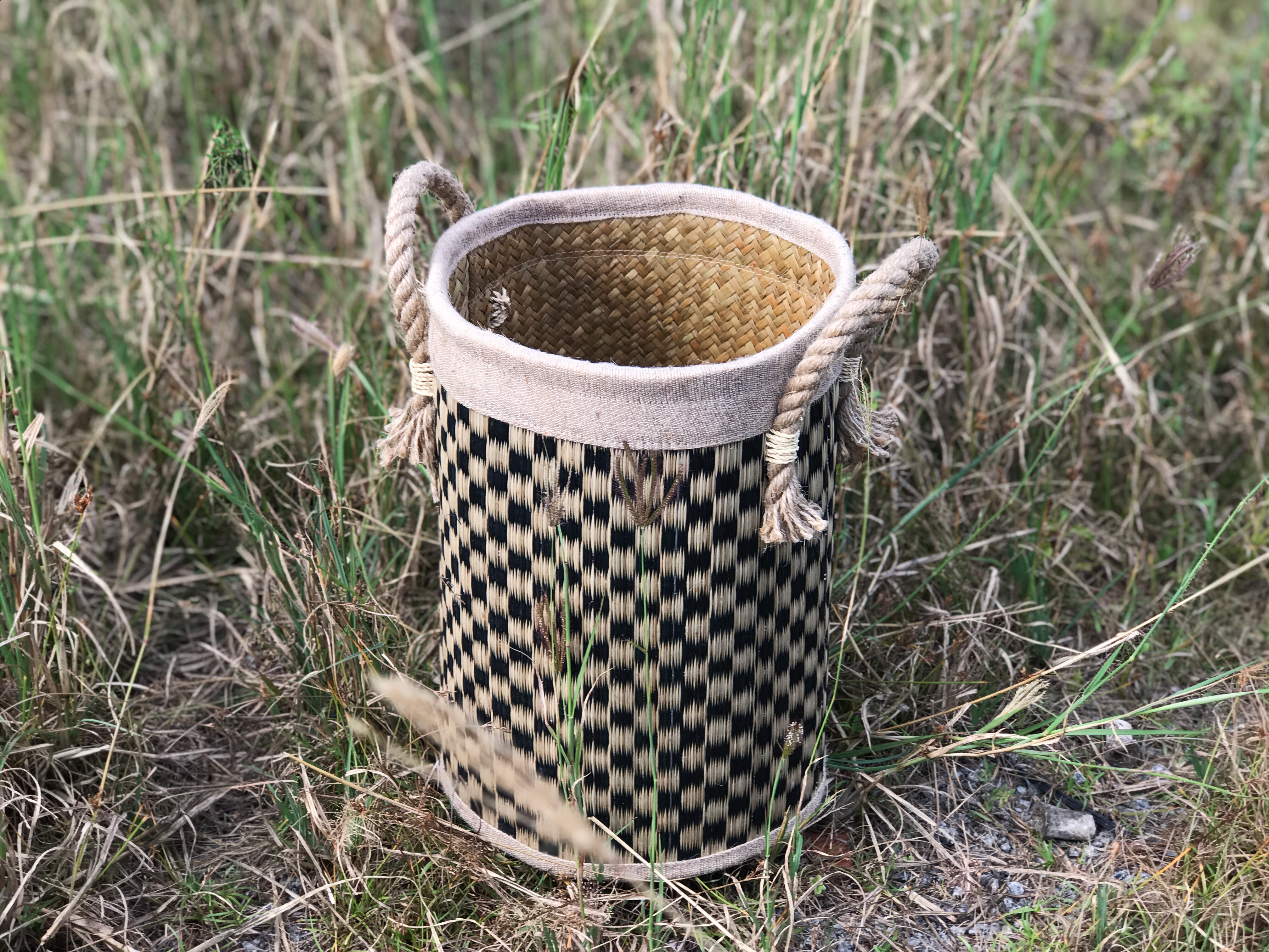 Sọt bàng là sản phẩm được làm thủ công 100% bởi đôi tay lành nghề của các nghệ nhân chân chính, chất liệu được sản dụng hoàn toàn thân thiện với môi trường là cỏ bàng Phú Mỹ và chiếu uzu. Các chi tiết của sản được đan rất chắc chắn và chất lượng, được điểm tô thêm các đường viền vải màu nâu nhẹ càng tôn thêm được nét tau nhã cho sọt. Việc kết hợp đan xen kẻ nâu và đen làm sản phẩm toát nên vẻ trẻ trung, sang trọng hơn. Bên ngoài sọt được đan bằng chất liệu chiếu, giúp sản phẩm bền bỉ hơn. Rất xứng đáng để ai ai cũng nên mua về dùng thử, ủng hộ hàng Việt Nam, nâng tầm đồ Việt.