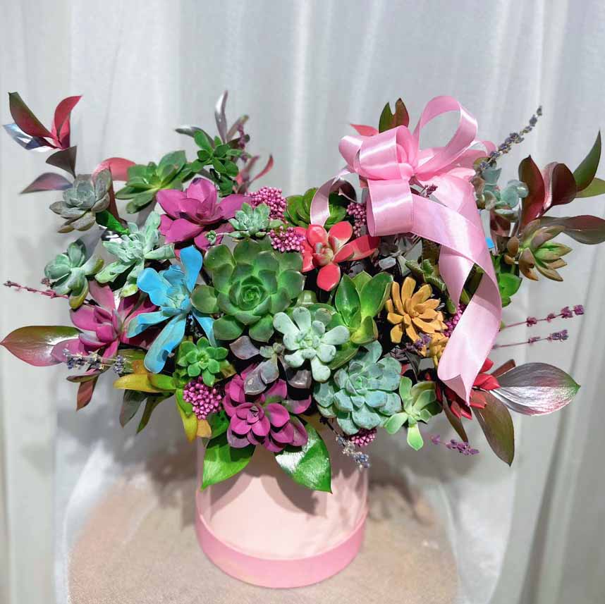 Chậu hoa sen đá màu hồng xinh xắn