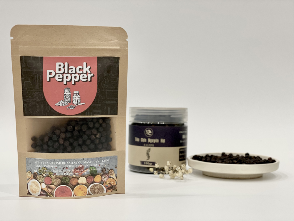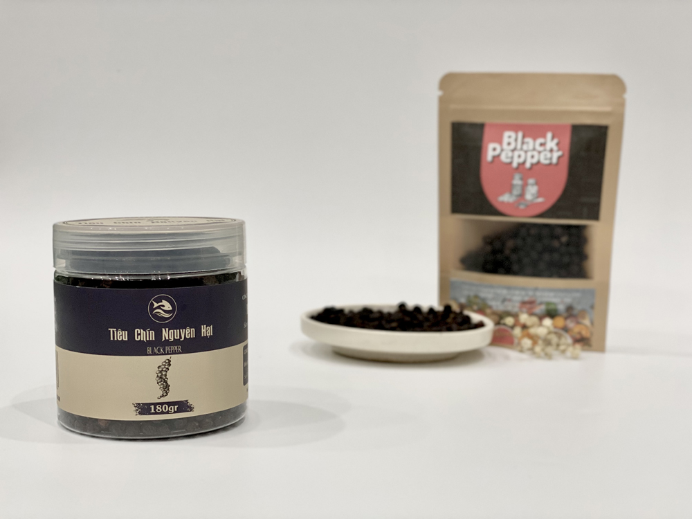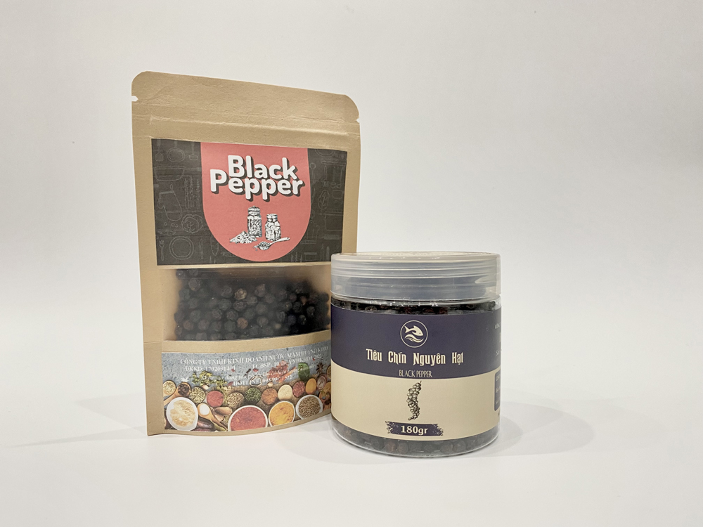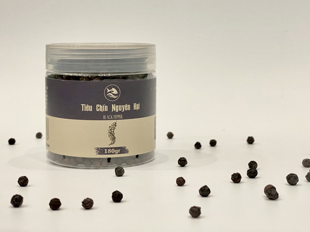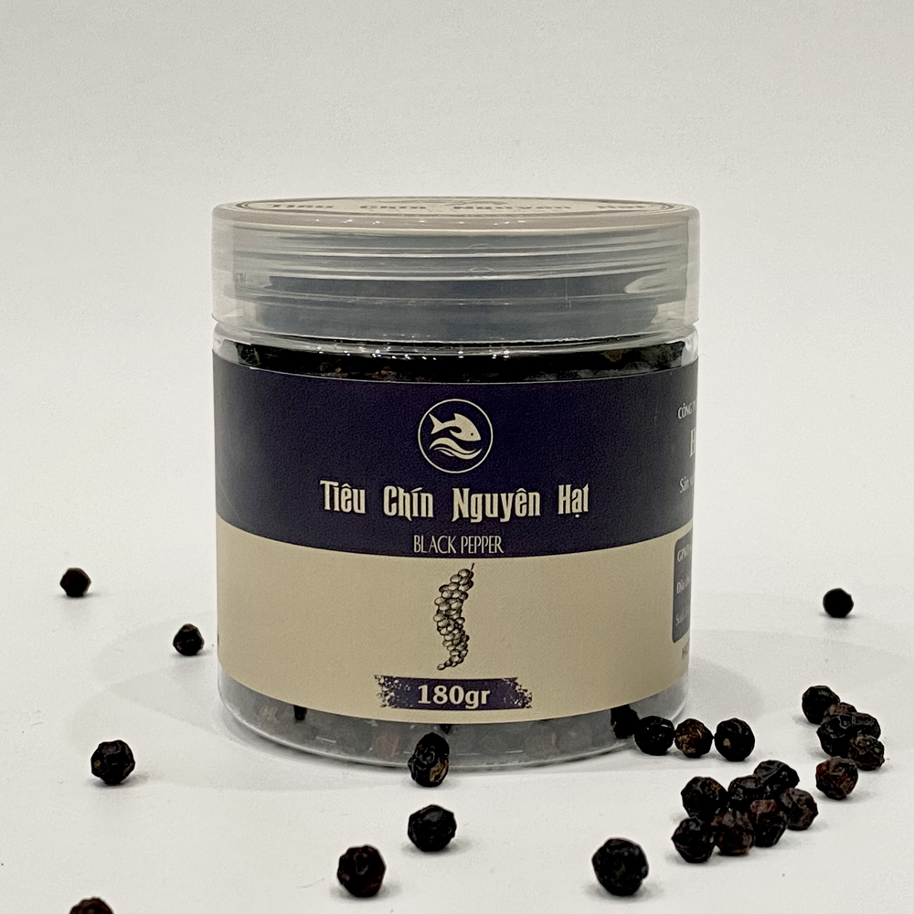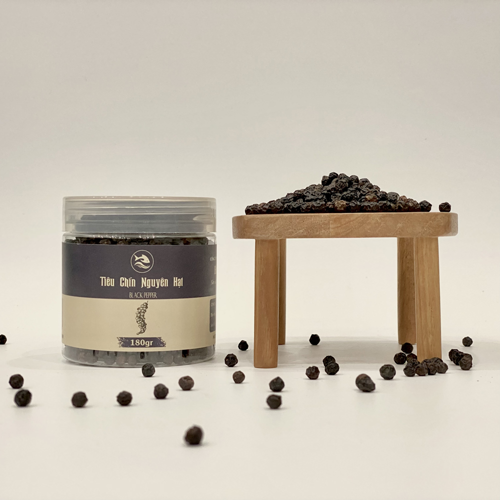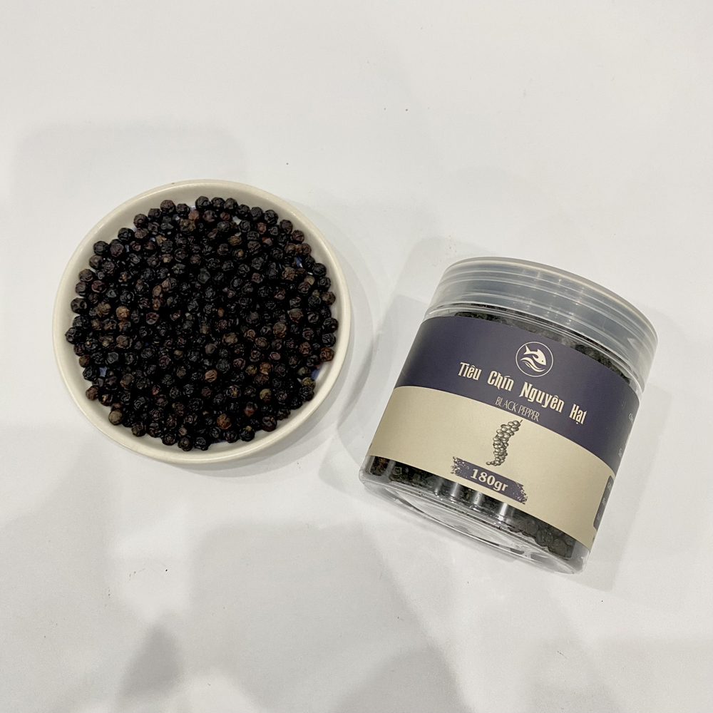 Tiêu đen nguyên hạt là một loại gia vị được lựa chọn và thu hái cẩn thận từ hạt tiêu chín đỏ, sau đó được sấy khô tỉ mỉ, trước khi được đóng gói giữ nguyên hạt. Hạt tiêu sẽ có màu đen và có hương vị cay nồng, thậm chí hơi ngọt. Đây là loại gia vị quen thuộc được sử dụng trong các bữa ăn của gia đình Việt, cũng là một loại gia vị không thể thiếu khi chúng ta muốn món ăn của mình trở nên ngon hơn.