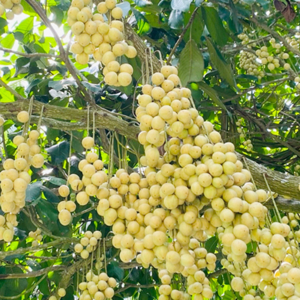 Những trái vú sữa chín mọng to tròn lủng lẳng trên cành vô cùng thích mắt